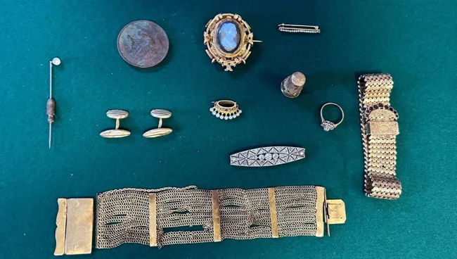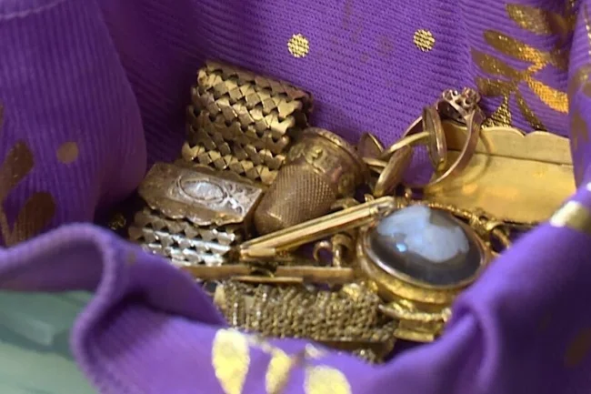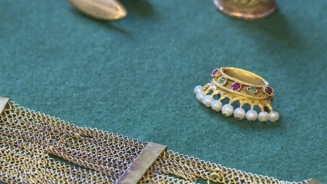 В тайнике также обнаружены золотые кольца, броши с жемчугом, браслеты, инкрустированные драгоценностями, а также заколки для волос. Драгоценности, видно, лежали под стеной длительное время и были запутаны среди корней старого дерева. До сих пор неизвестно, как, почему и когда они там оказались.