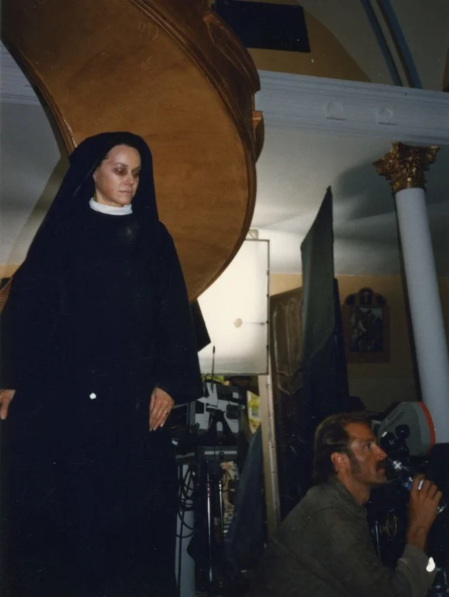 Барбара Херши спускается по лестнице во время съёмок