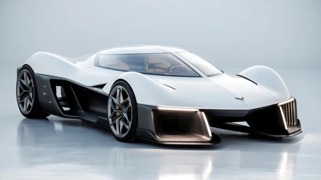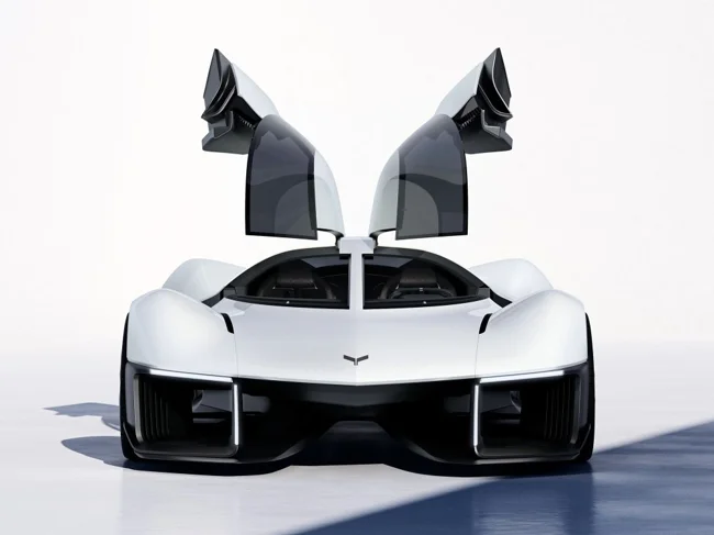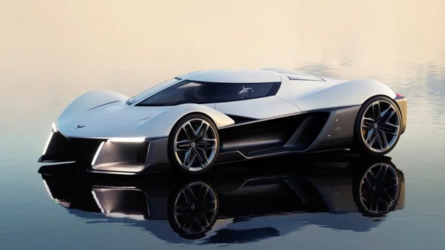 General Motors представила футуристический концепт будущего электрического спорткара Chevrolet Corvette, разработанный новой британской дизайн-командой из Бирмингема. Автомобиль выполнен в стиле гиперкара с отсылками к авиационному дизайну — выразительная аэродинамическая форма дополнена проекционным дисплеем на лобовом стекле для водителя. Двери сконструированы по типу «крыло чайки».