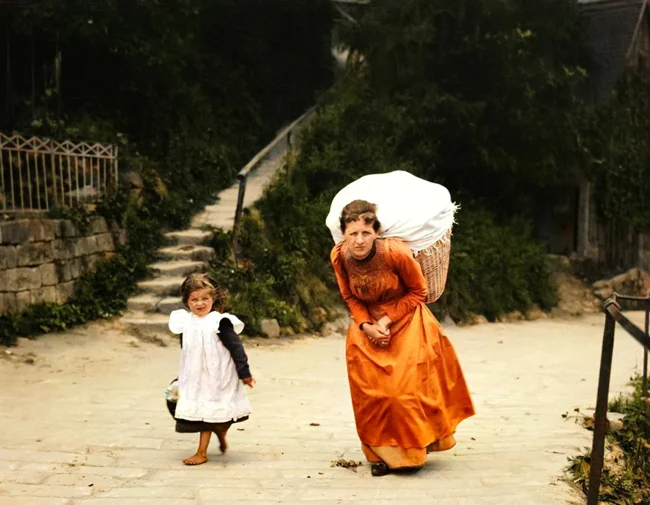 Женщина несет тяжелую корзину. Нидерланды, 1904 год. ![]()