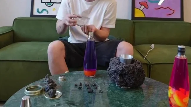 По итогу блогер вернулся домой и смог собрать первую в мире лавовую лампу с настоящей лавой внутри. Однако это не совсем то, что представляется — светильник сохранил наполнение водой и воском и оригинальную конструкцию, но внутри теперь покоится несколько измельченных кусочков вулканической породы — ожидаемо, в твердом состоянии. Но, так или иначе, цель достигнута.