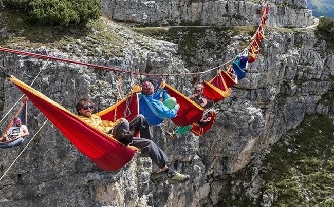 5. Слэклайн или хождение по стропе, фестиваль в горах Монте-Пьяна, Италия