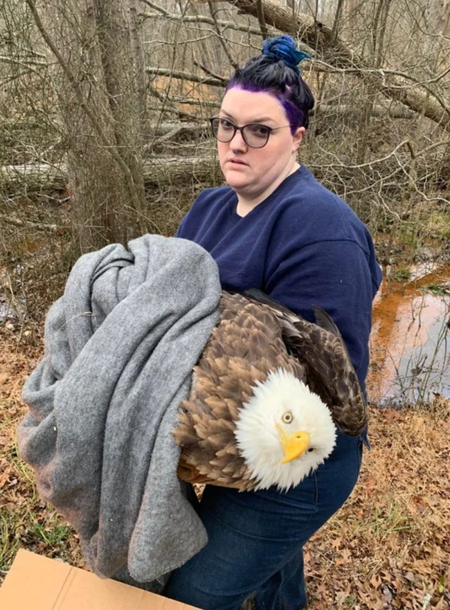 13. Работаю спасателем-ветеринаром для хищных птиц. В свой выходной решила покрасить волосы, но меня выдернули из дома из-за этого дружка