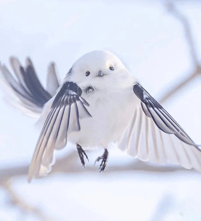 Сима-энага (или шима-энага) — подвид длиннохвостой синицы, который встречается только на острове Хоккайдо в Японии. За специфический внешний вид японцы прозвали птичку снежной феей.