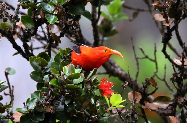 Гавайский вид воробьинообразных птиц из подсемейства гавайских цветочниц из семейства вьюрковых. Также известна как и'иви, или алый гавайский медонос. Это один из самых узнаваемых символов Гавайских островов. Чудесные птахи находятся под угрозой исчезновения: их осталось всего 150 000 из-за потери среды обитания, хищников и птичьей малярии, распространяемой комарами.
