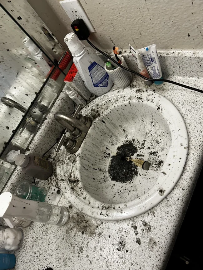 16. Раковина засорилась, а когда я пытался её почистить, она обдала всё вокруг грязью