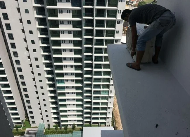 Парень чинит кондиционер. На выступе. На 28 этаже. В шлёпанцах. Камон. Есть люди, которым всё равно, есть ли там перила. Главное — работа и чтобы инструменты не улетели. Или он сам. Надеюсь, ему хоть платят за это хорошо.