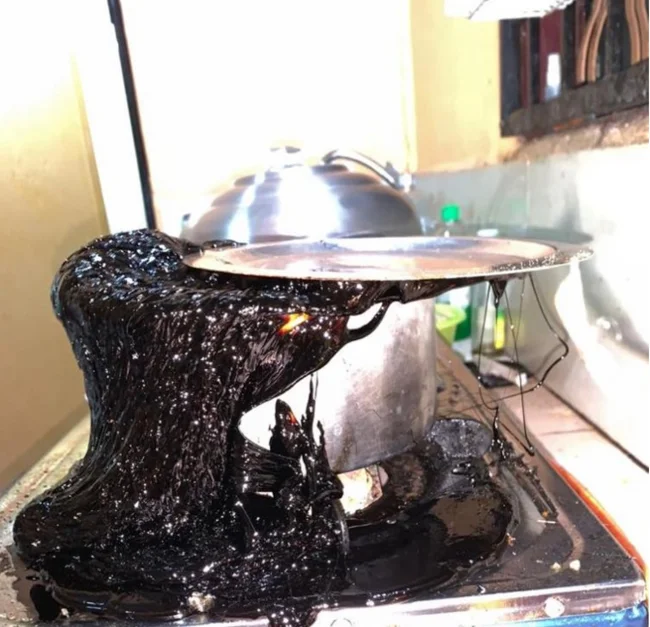 2. Изначально это было 2 кг сахара, которые должны были стать карамелью для напитка. Но кто-то заснул в процессе готовки и вот!