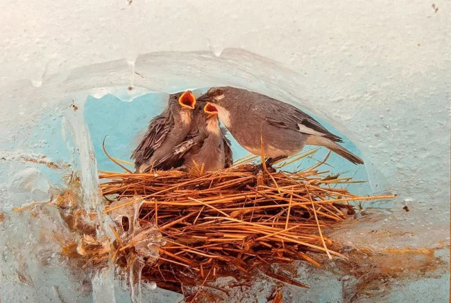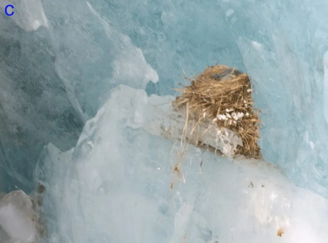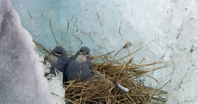 Во-вторых, в условиях высокогорья ледник — лучшее место для строительства гнезда! Посудите сами: от хищников защита есть? Есть. От ветра, дождя, снега и прочих причуд ледяная стена птенчиков огораживает? Огораживает. От ультрафиолета защищает? Защищает. Более того, внутри ледника сохраняется тепло, держится стабильная температура и создаётся особый микроклимат. На высоте в 5000 метров таких идеальных условий больше нигде не найти!