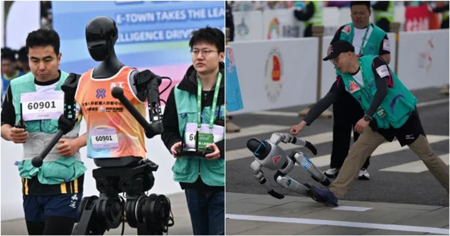 В Пекине состоялся первый полумарафон с участием человекоподобных роботов (1 фото + 3 видео)