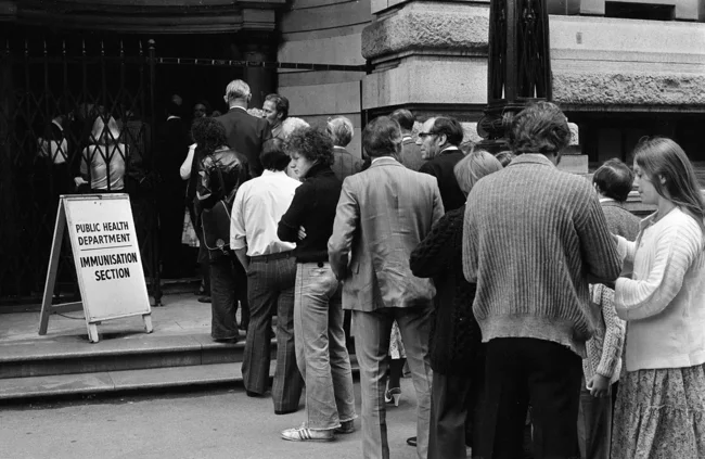 Люди выстраиваются в очередь на прививки от оспы в Бирмингеме в 1978 году
