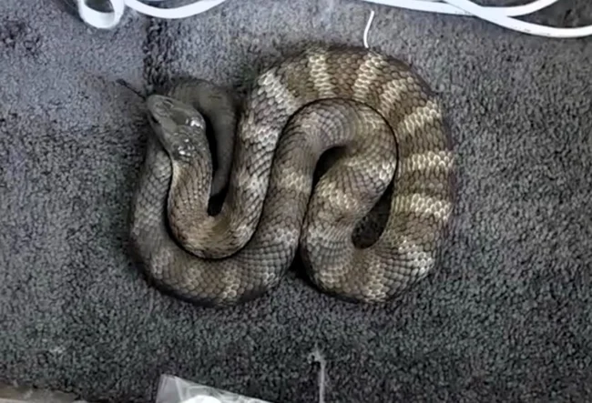 Женщина нашла рептилию в спальне и тут же вызвала специалиста. Ловец змей Марк Пелли осмотрел змею и решил снять ее на видео. На нем видно, как рептилия, свернувшись, лежала за прикроватной тумбочкой, а потом чуть не уползла под кровать. После съемки ловец успешно поймал змею и выпустил ее на волю.