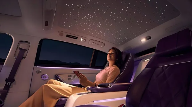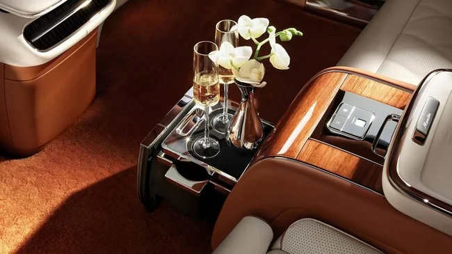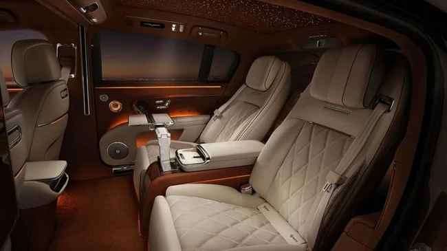 Пассажирам второго ряда предлагается размещаться на роскошных раздельных креслах-оттоманках с подогревом, вентиляцией и функцией массажа. В подлокотнике спрятан холодильник и выдвижной столик, имеется съёмная сенсорная панель для настройки климатической установки и управления рядом других функций, а также подогреваемые и охлаждаемые подстаканники, бардачок с доступом по отпечатку пальца, проекционный экран и т. д.