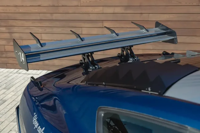 Образ спорткупе дополнен внушительным «кенгурятником», многочисленными LED-прожекторами и огромным антикрылом. Установлены расширенные крылья и капот с воздухозаборниками.