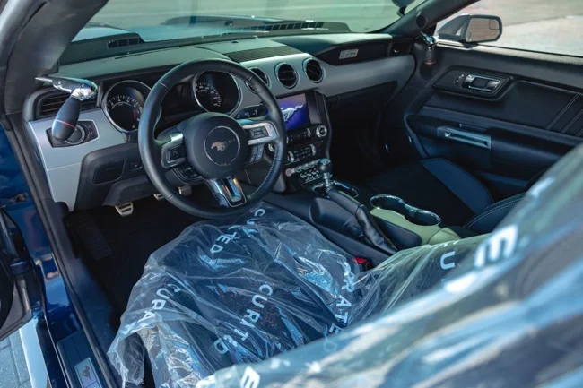 Под капотом стоит стандартный пятилитровый V8 мощностью 441 л.с. в связке с 6-ступенчатой «механикой». Пробег машины меньше 1300 километров. Очевидно, что Mustang не эксплуатировался после работы на съёмках. К нему прилагаются некоторые документы с подписью режиссёра «Трансформеров» Майкла Бэя.