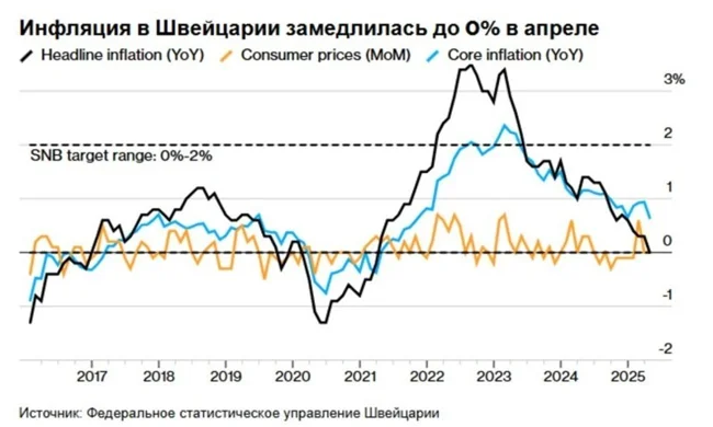 Нынешняя процентная ставка является самой низкой с сентября 2022 года. Впрочем, если бы не рост цен на жильё, отрицательная инфляция могла бы настигнуть Швейцарию уже в апреле 2024. Укрепление швейцарского франка произошло, как считают эксперты, из-за снижения стоимости импортируемых товаров, в том числе энергоносителей. Национальная валюта укрепилась после тарифов, введённых Д.Трампом. Эксперты полагают, что после этого инвесторы начали вкладываться в швейцарскую валюту.