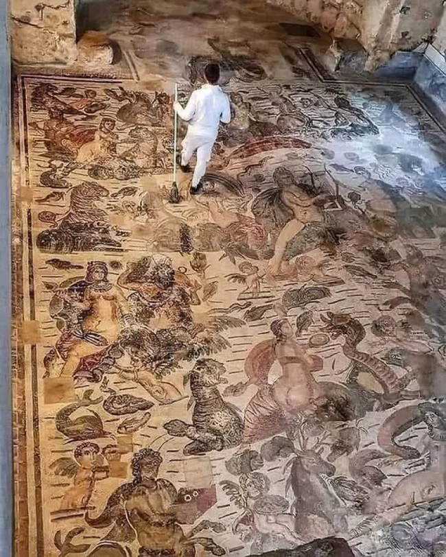 18. Мозаичный пол IV века на древнеримской вилле в Сицилии, Италия