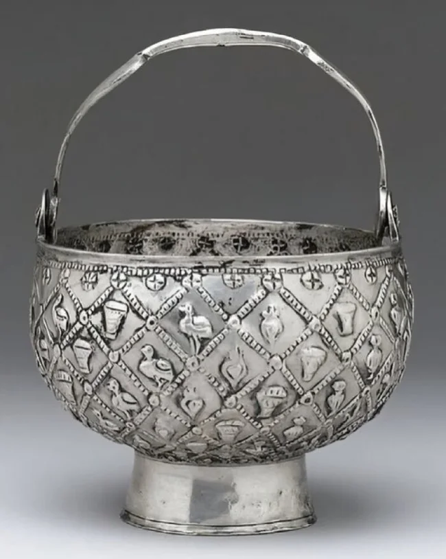 19. Серебряное ведёрко из Врапа, Албания. Оно было частью клада, спрятанного в VI-VII веках аварами или восставшими против них булгарами