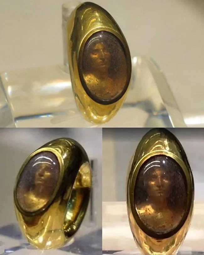 1. В древнеримской гробнице нашли 2000-летний золотой перстень с 3D-портретом. Изделие принадлежало Эбуции Кварта, а изображён её покойный сын Тит Карвилиус Гемелло
