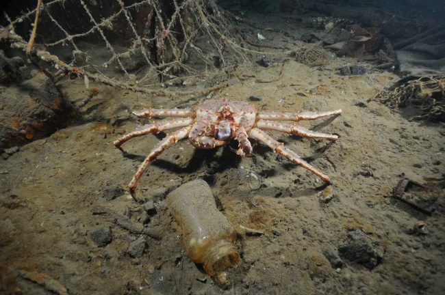 Камчатский краб находится в своеобразной суперпозиции. С одной стороны — это уязвимый вид, численность которого уже сейчас приходится поддерживать искусственно. А с другой — многомиллионная орда, которая играючи сломала экосистему Баренцева моря и продолжает захватывать новые территории. И, что характерно, в обоих ситуациях виноват человек.