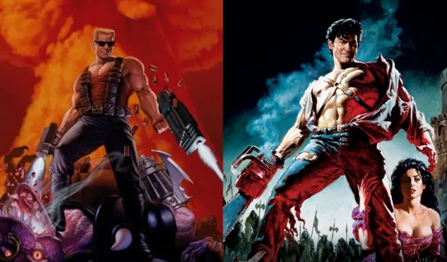 Кстати, знаменитая обложка к игре "Duke Nukem 3D" - это прямая отсылка к обложке культового фильма "Зловещие мертвецы 3: Армия тьмы". Сами посмотрите.
