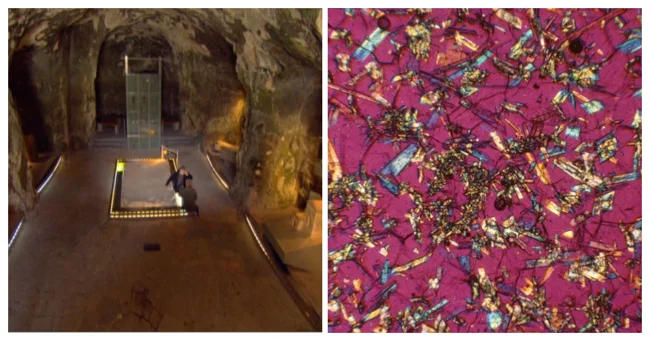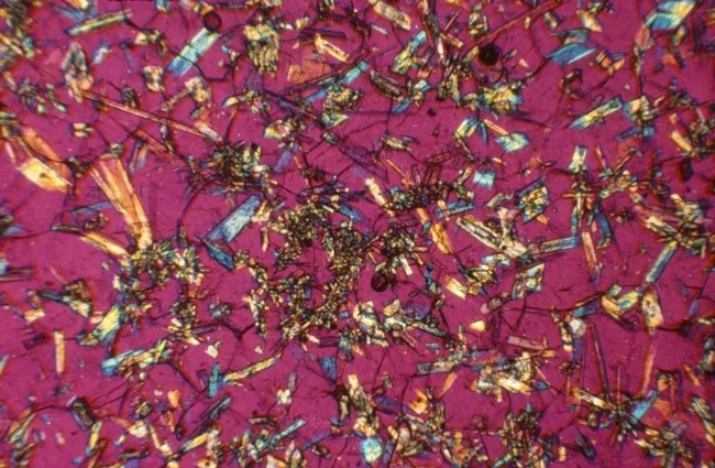 Фотомикрография кристаллов в стеклянной плите Бейт-Шеарима