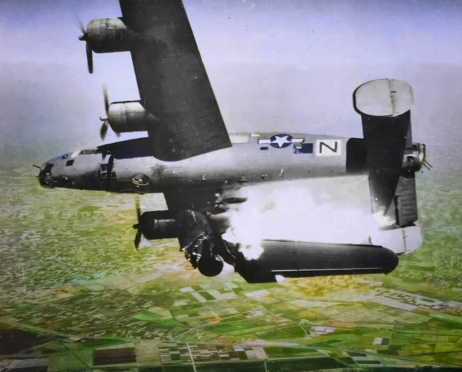 Падение американского бомбардировщика B-24L-10 «Либерейтор» сбитого над городом Луго (Италия), 1945 год.