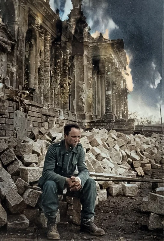 Пленный немецкий солдат у Рейхстага. Май, 1945 года.