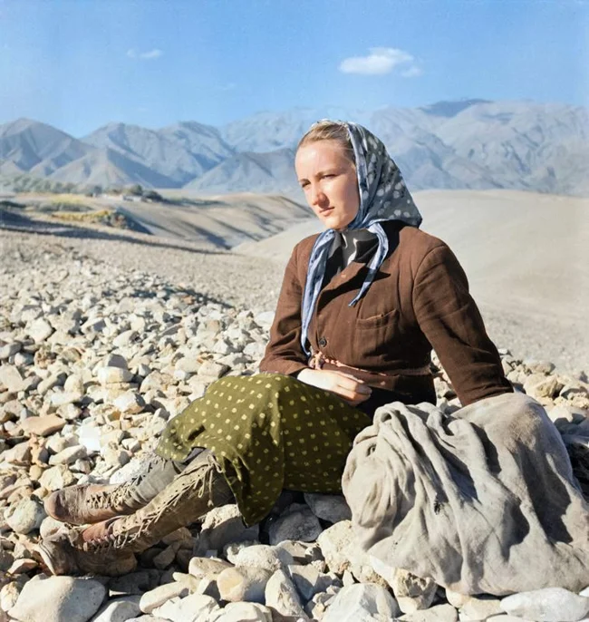 Из источника: Портрет взрослой дочери семьи Ковальских, беженцев из Польши, отдыхающей во время пешего перехода из Советского Союза через горы в Иран. Она одна из граждан Польши, депортированных в Сибирь Советами в 1939 г., теперь освобождена из советского плена и ей разрешено эвакуироваться в зону, контролируемую британцами, вместе с основными силами будущего 2-го Польского корпуса, 6 ноября 1942 г.
