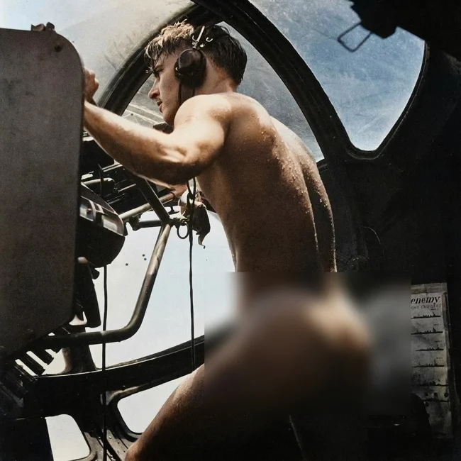 В пылу спасательной операции в заливе Рабаул фотограф Гораций Бристоль запечатлел необычный, почти эротический кадр Второй мировой: обнажённого стрелка, вернувшегося к службе сразу после прыжка в воду.