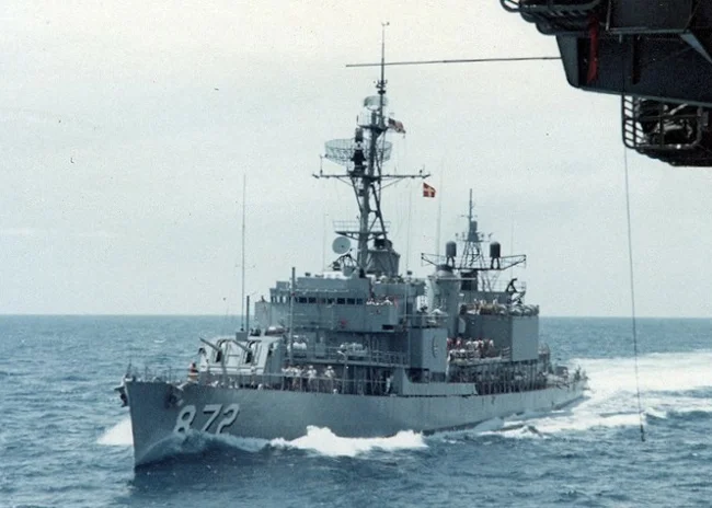 Эсминец USS Forrest Royal, будущий Adatepe. Фото сделано у берегов Вьетнама с борта авианосца USS Hancock, апрель 1967 года