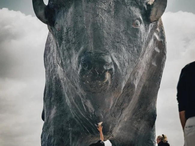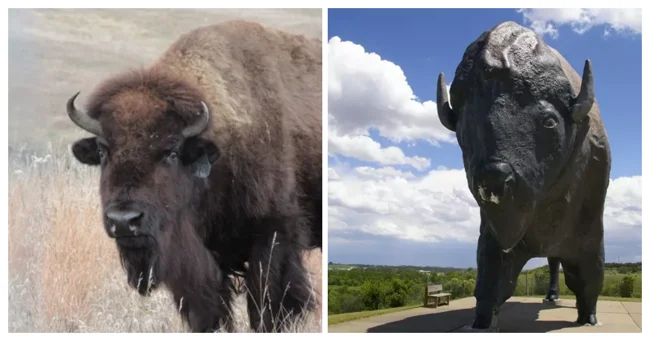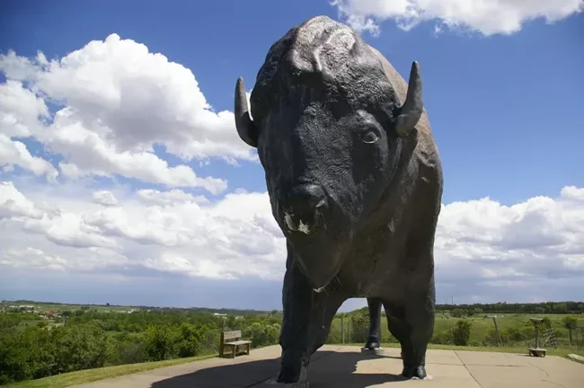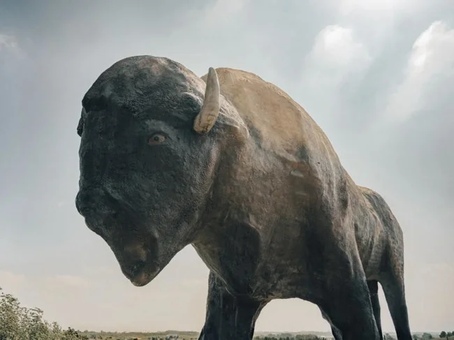 Это не памятник древности, а самая большая в мире статуя бизона, и она весит целых 60 тонн — как 60 взрослых самцов.