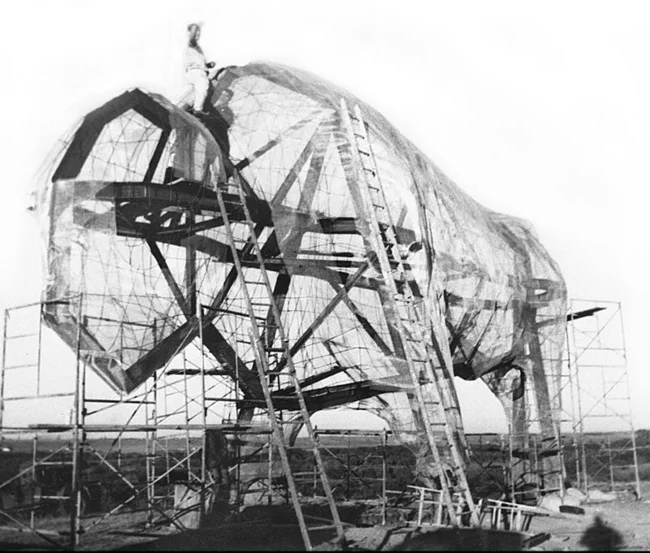 В 1959 году преподаватель и скульптор Элмер Пол Петерсон из колледжа Джеймстауна решил создать нечто грандиозное. Используя армированную проволоку, стальные балки и специальный цемент, он построил статую длиной 14 метров (как пятиэтажный дом!) и высотой 8 метров.