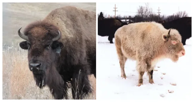 А ещё здесь есть настоящее стадо бизонов численностью около 30 голов, среди которых выделялась бизониха по кличке Белое Облако — редчайший альбинос. К сожалению, она скончалась от старости в 2016 году, но зато осталось белое потомство. Такие особи очень редкие и считаются у коренных народностей священными животными.