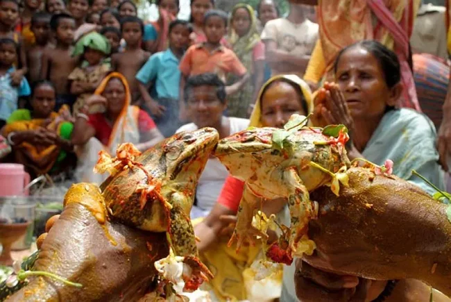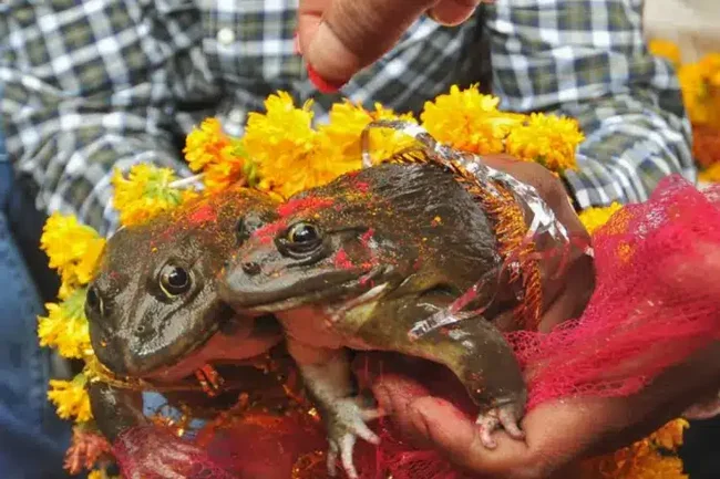 Крестьяне верят, что, связав лягушек узами брака, они угождают Варуне (богу воды) и Индре (богу дождя). А их кваканье — верный знак, что ливни не за горами. А ещё в знойное лето такой праздник — отличный повод отвлечься от жары и сплотить общину перед сезоном урожая.