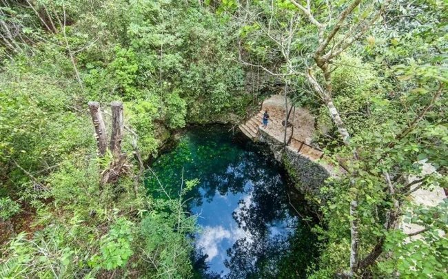 Где-то в глубинах мексиканского полуострова Юкатан, в штате Кинтана-Роо, скрывается удивительная подводная пещера — сенот Эль-Сапоте. Её воды уходят вниз на 50 метров, но самое поразительное ждёт пловцов на середине пути.