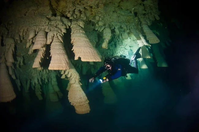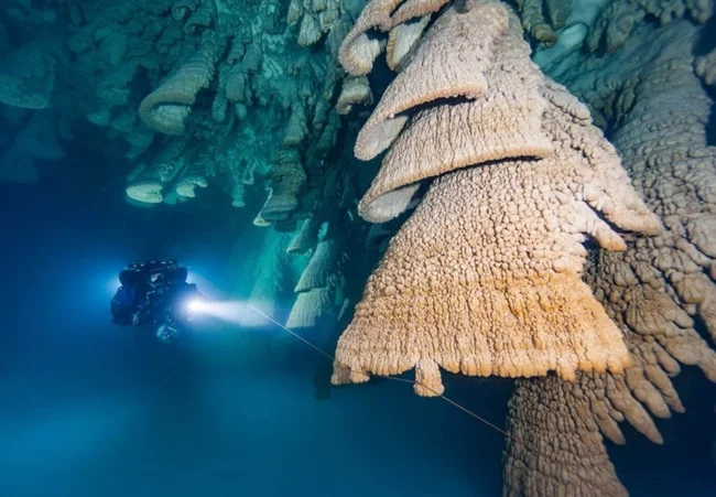 Профессор Вольфганг Штиннесбек из Гейдельбергского университета, чья команда исследовала пещеру, уверен: рост этих структур зависит от уникальных биохимических условий в зоне галоклина. А ещё они невероятно древние — первые «колокола» начали формироваться 5 000 лет назад… и процесс продолжается до сих пор.