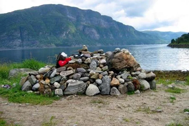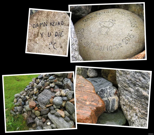 Местные жители похоронили его по древней традиции – сложив каирн (каменную пирамиду). Теперь каждый посетитель добавляет свой камень. Камни «растут» уже больше 20 лет.