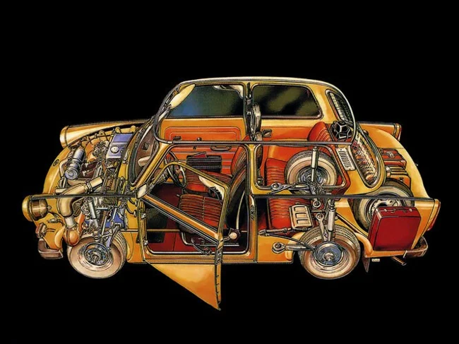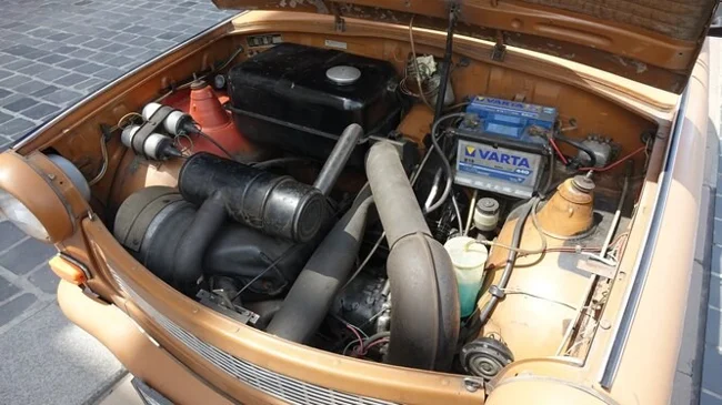 Конечно, движок «Трабанта» даже по меркам 1950-х был дюже громким, неэкологичным и в целом архаичным. Ни тебе клапанов, ни распредвала, в нем насчитывалось всего пять подвижных деталей, а значит и ломаться как бы нечему. Плюс простоты конструкции еще и в том, что ремонтировать его можно было хоть в чистом поле при помощи отвертки, лома и немецких матюков. Только с 1988 года в серию пошел модернизированный «Траби» с куда более современным 1,1-литровым 40-сильным двигателем от Volkswagen Polo.