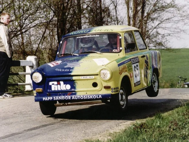 Летающий "Траби"? Нет, такой версии в модельной линейке не было. Зато было множество ралли и кольцевых гонок, в которых автомобильчик не просто участвовал, но даже побеждал. Вот вам и пластиковый тарантас