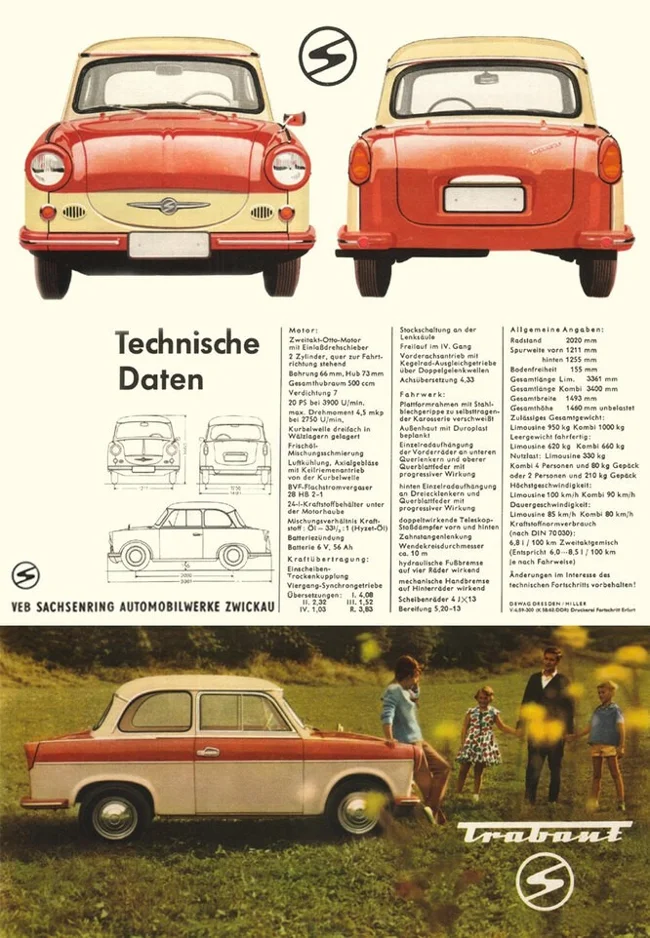 Когда поднимается тема народного автомобиля, практически все вспоминают Volkswagen и конкретно "Жук". Однако мало кто знает про такой автомобиль как «Трабант», который никогда не был идеальным, но этот восточногерманский тарантас настоящий уникум и вообще один из самых продвинутых автомобилей 1950-х годов.
