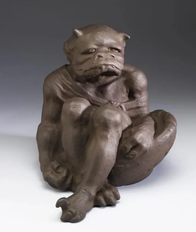 Статуэтка Бога ветра выполнена в древней технике репуссе, Япония, примерно 1915-й