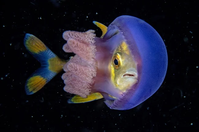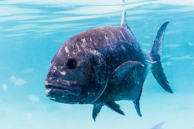 Гигантский, желтопёрый каранкс, или улуа — это морская торпеда с зубами и противным характером. Уж простите, но выглядит он как карикатурный тестостероновый качок: куча мышц, агрессии и неопределённо-невменяемый взгляд. Да и ведёт он себя также: каранксу лишь бы до кого-нибудь докопаться. Вырастают рыбины до 180 сантиметров в длину и весят под 80 килограмм — при таких габаритах докапываться можно практически до кого угодно. Плюс зубищи, плюс высокая скорость, крутая манёвренность и недюжинная сила — и вот они уже смотрят на всех остальных подводных жителей как на обед.