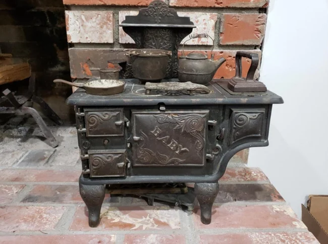 Похоже на детскую игрушку или на выставочный экспонат. Люди разошлись во мнениях, но многие считают, что это детская игрушечная печка.