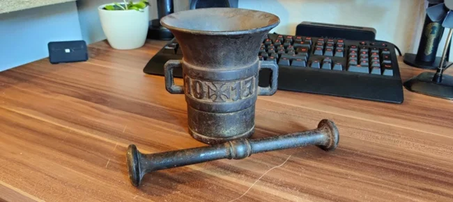 Это очень старинный пестик со ступкой