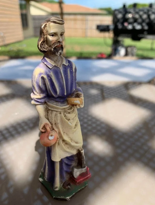 Это статуэтка Святого Иосифа. Ее закапывают во дворе, чтобы продать дом.
