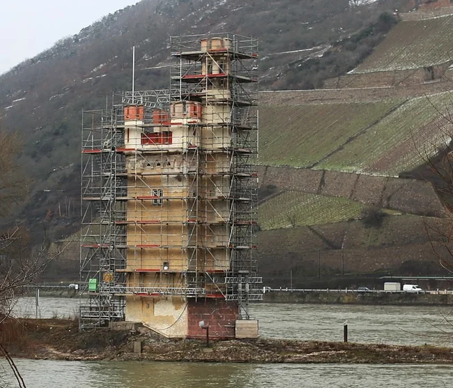 Мышиная башня в Бингене во время реконструкции в 2015 году
