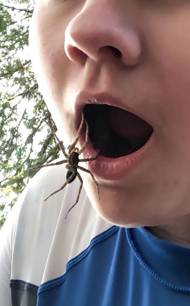 Паук, падая с дерева, решил спастись и схватился за губу. Тот случай, когда не в то время не в том месте
