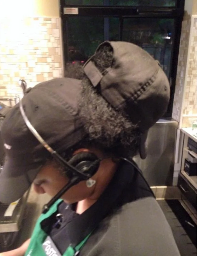 10. Шапочка закрывает волосы от продуктов и сотрудница фаст фуда решила не ограничиваться формальной кепкой