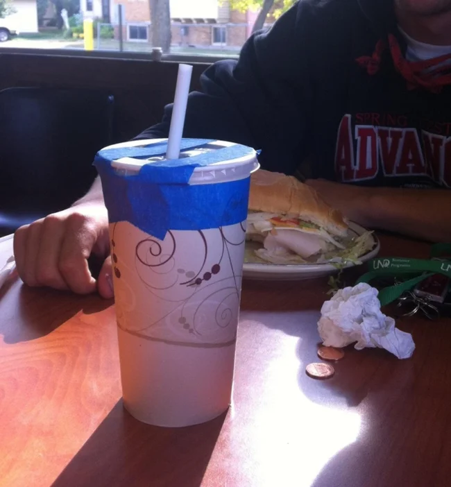 14. Зная о неуклюжести клиента, официантки клеят ему безопасные полоски, чтобы не проливал напиток